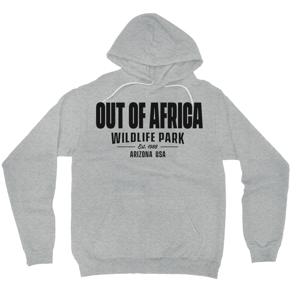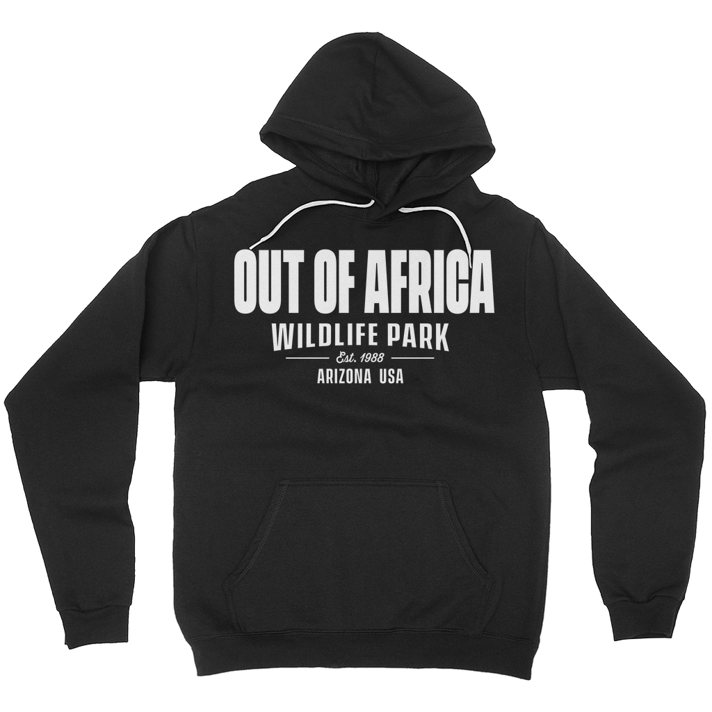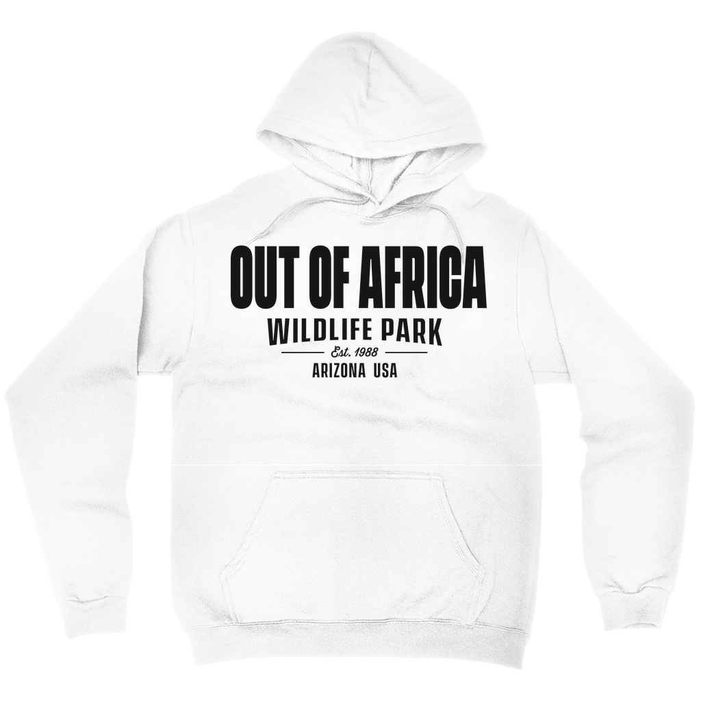 Stay cozy and stylish with the Out of Africa Wildlife Park Hoodie, featuring a bold and classic design that celebrates the spirit of adventure and wildlife conservation. Made from soft, high-quality fabric, this hoodie is perfect for those cool mornings at the park or casual days out. The front proudly displays the iconic Out of Africa Wildlife Park logo, established in 1988, with a timeless Arizona USA inscription that connects you to the heart of the wild.