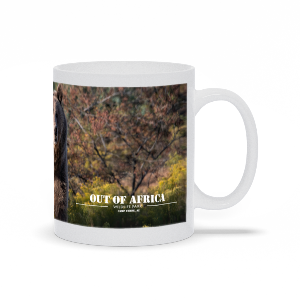Embrace the power and majesty of the wild with the "Mighty Grizzly" Bear Mug, featuring an awe-inspiring photograph by celebrated wildlife photographer Kathleen Reeder. This exclusive 11oz mug, available only through Out of Africa Wildlife Park, captures the commanding presence and formidable strength of a grizzly bear as it roams its natural habitat. Perfect for your morning coffee or evening tea, this mug brings the rugged beauty of the wilderness into your daily life.